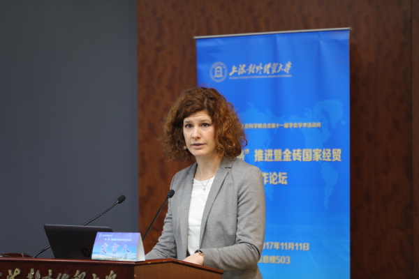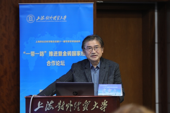 11月11日,“一带一路”推进暨金砖国家经贸合作论坛在松江校区信息楼503会议室举行。此次学术会议由必赢626net入口首页国际经贸研究所、《国际商务研究》编辑部、上海国际贸易中心战略研究院、黄建忠工作室以及上海市国际贸易学会联合主办。副校长徐永林、中国社会科学院欧洲研究所的孔田平、《经济研究》常务副主编郑红亮、对外经济贸易大学学术刊物部主任崔鑫生出席会议并致辞。来自复旦大学、中国人民大学、南开大学、南京大学、武汉大学、对外经济贸易大学、苏州大学、广东外语外贸大学、西南财经大学等国内院校以及海外的著名专家学者和来自中国社会科学院、上海社会科学院、《经济研究》杂志等单位的学者共100余人出席会议,会议围绕“一带一路”建设与金砖国家合作等问题进行了深入的探讨,由国际经贸学院院长黄建忠教授主持会议开幕式。本次会议是上海市社会科学联合会第十一届学会学术月的系列活动之一。