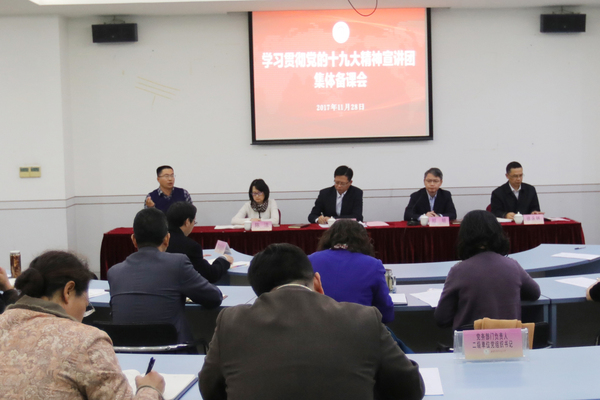 11月28日下午,学校在信息楼530会议室举行党的十九大精神宣讲团集体备课会。校党委书记殷耀,副校长陈洁、徐永林,学校党的十九大精神宣讲团成员、党委职能部门负责同志、二级单位党组织书记参加会议。会议由党委副书记、副校长祁明主持。