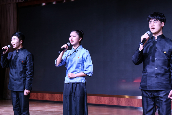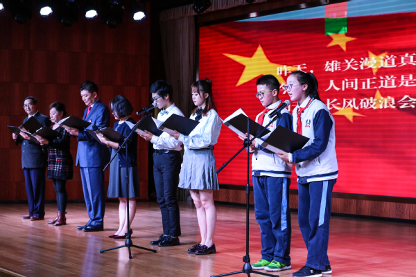诗会主要分为四个篇章,以“党史”开篇,以“青春”收尾,重忆共产党人的初心,感悟美好生活的来之不易,体会习近平总书记对党、对国家、对人民用情之深、之切,闪耀着党的十九大精神的思想光辉,澎湃着新时代的青年用青春建功新时代的壮志豪情,带领在场师生寻岁月之路,显时代之魂,望思想之光,燃青春之火。活动邀请了学校优秀学生代表、退休党员代表、教师代表、附校学生代表参与到朗诵节目中,将诗会打造成为了一个可延展、可参与、可分享的活动。