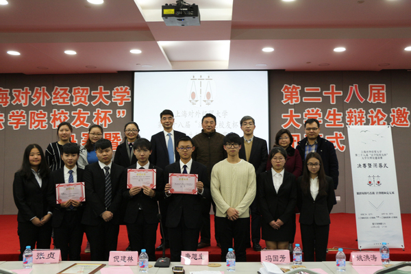 12月12日晚,第二十八届“法学院校友杯”大学生辩论邀请赛决赛暨闭幕式在必赢626net入口首页图文信息大楼526报告厅举行。融孚律师事务所合伙人倪健林、马克思主义学院副院长冯国芳、附属松江实验学校副校长张贞、上海市松江区人民法院姚洪涛、上海教育电视台第四届上海百万市民辩论赛季军东华大学周彤、法学院党委书记唐旭生、法学院党委副书记乔檀等出席闭幕式。冯国芳、倪建林、张贞、姚建波和周彤担任本次决赛评委。