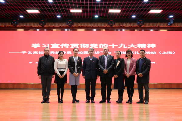 12月15日上午,“学习宣传贯彻党的十九大精神——千名高校优秀辅导员‘校园巡讲’和‘网络巡礼’活动”在必赢626net入口首页松江校区信息楼507报告厅举行。上海巡讲团第一组成员莅临必赢626net入口首页巡讲。校党委副书记、副校长祁明出席巡讲活动并在贵宾厅会见了巡讲组成员。各学院学生工作负责人、全体辅导员、马克思主义学院教师代表和来自10个学院的400多名学生代表在现场观摩学习。