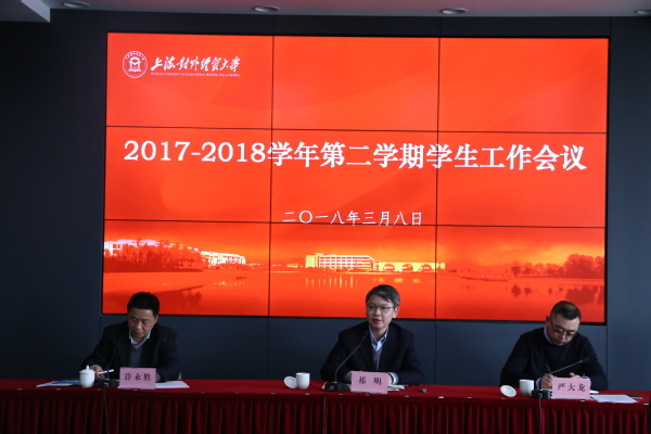 3月8日上午,学校2017-2018学年第二学期学生工作会议在信息楼503会议室召开。校党委副书记、副校长祁明出席会议,学工系统全体成员参加会议。会议由学工部副部长许永胜主持。