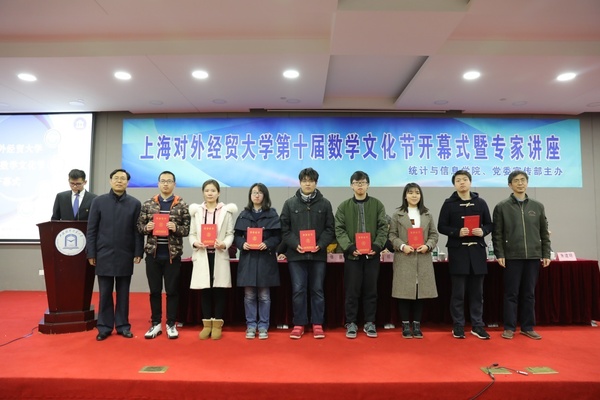 张彦宣读2017年全国高等数学竞赛和全国大学生建模竞赛获奖名单。与会领导分别为获奖队伍、个人颁奖。2017年全国大学生建模竞赛上海赛区一等奖的获得者蔡楚玥同学代表往届选手发言。