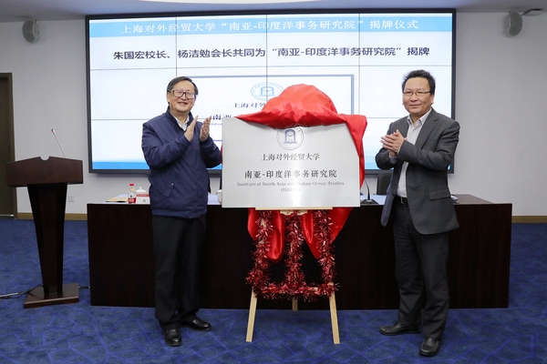随后,朱国宏和杨洁勉共同为“南亚-印度洋事务研究院”揭牌。