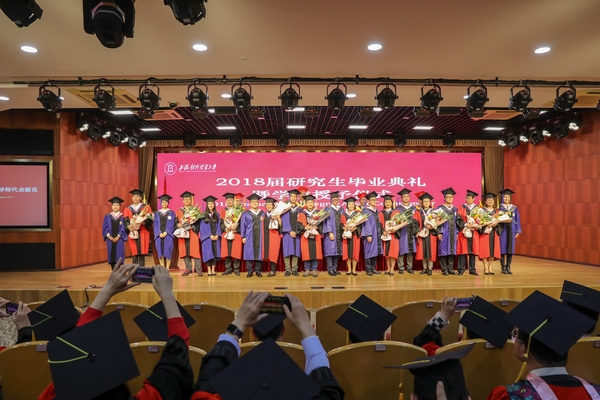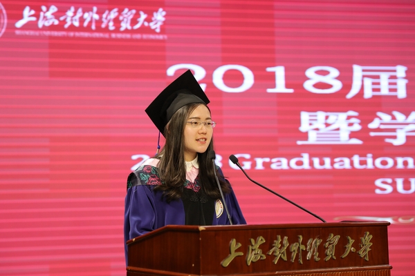 典礼上,校领导分别向获得学校优秀毕业生、上海市优秀毕业生及优秀硕士论文的毕业生颁发了荣誉证书。国际经贸学院张娟同学代表全体硕士毕业生分享了在学校两年半学习生活的点滴以及成长的心得体会,她在发言中饱含对学校、老师的感恩和对研究生学习生涯的怀念。统计与信息学院院长刘永辉教授作为硕士生导师代表发言。发言中,他回顾了2018届研究生在过去三年的学习和生活中,我国经济社会发生的变化,以及他与同学共同探究学术问题的情景。临别之际,他与毕业生分享了对“坚守”“奋斗”“梦想”的感悟,勉励毕业生时刻铭记“诚信、宽容、博学、务实”的校训,树立终身学习的理念,秉持不懈奋斗的信念,最终实现最初的梦想。