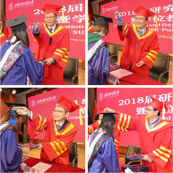 典礼上,校领导分别向获得学校优秀毕业生、上海市优秀毕业生及优秀硕士论文的毕业生颁发了荣誉证书。国际经贸学院张娟同学代表全体硕士毕业生分享了在学校两年半学习生活的点滴以及成长的心得体会,她在发言中饱含对学校、老师的感恩和对研究生学习生涯的怀念。统计与信息学院院长刘永辉教授作为硕士生导师代表发言。发言中,他回顾了2018届研究生在过去三年的学习和生活中,我国经济社会发生的变化,以及他与同学共同探究学术问题的情景。临别之际,他与毕业生分享了对“坚守”“奋斗”“梦想”的感悟,勉励毕业生时刻铭记“诚信、宽容、博学、务实”的校训,树立终身学习的理念,秉持不懈奋斗的信念,最终实现最初的梦想。