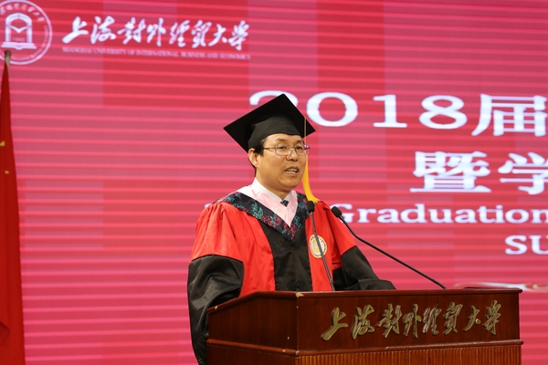 朱国宏校长发表了热情洋溢的讲话。他首先代表学校对毕业生顺利完成学业表示诚挚的祝贺。他说,学校近年来研究生培养质量稳步上升,2018届研究生在重大赛事、学术科研、升学就业等方面取得了优异的成绩。他指出,人才培养始终是大学的核心功能,一所大学的价值,在于其毕业生对社会、对人类作出的贡献,各位毕业生在今后学习和工作道路上要砥砺奋进,勇敢肩负起对国家、社会乃至全人类的责任。最后,朱国宏希望毕业生牢牢抓住历史机遇,在推动国际贸易发展、创新国际贸易形态、制定国际贸易规则、提升国际贸易话语权等方面不懈努力,为国家经贸事业发展贡献自己的力量,在实现中华民族伟大复兴的中国梦的进程中体现自己的人生价值。