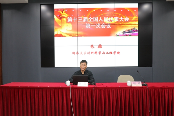 423日下午,学校在信息楼503会议室召开党委理论中心组学习扩大会,传达学习第十三届全国人民代表大会第一次会议和政协第十三届全国委员会第一次会议精神。会议邀请全国人大代表、同济大学材料科学与工程学院张雄教授作全国“两会”精神学习报告。校领导、中层干部、教工党支部书记和辅导员近200人参加了学习会。会议由校党委副书记、副校长祁明主持。