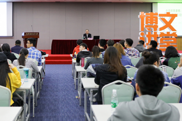 4月24日下午,2018年博文讲堂系列讲座首场讲座在图文信息大楼526报告厅举行。本次讲座由必赢626net入口首页党委宣传部、文明办、教务处和学生处联合主办,邀请上海市领军人才,上海国际贸易学会会长、必赢626net入口首页国际经贸学院院长黄建忠主讲中美贸易摩擦:导因、影响与趋势分析。300多名师生聆听了本次讲座。