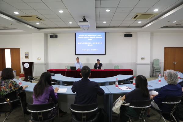 讲座中,Gary教授阐述了“新时代”对于中国发展的意义和“现代性”的意义,和在文化、移动性及现代性几个方面的表现。Gary教授指出,“文化”是社科领域最复杂重要的概念,而旅游正是这一概念的代表。移动学则改变了中国人构想与国家物质空间之间的关联方式,由此奠定了大众旅游业存在的基础。随后,Gary教授讲述了茶马古道的由来、概念及转变过程,结合自身经历和实景照片,从文化,移动性,时间三个方面探讨了茶马古道这一话题。