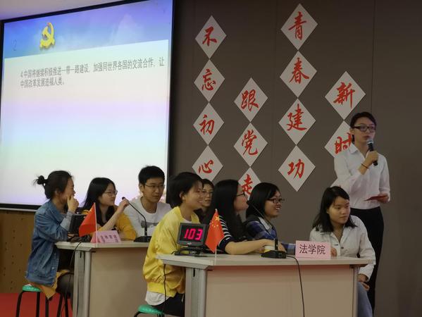 5月10日晚,“不忘初心跟党走,青春建功新时代”党的十九大知识竞赛决赛在信息楼526报告厅举行。金融管理学院党委副书记刘春华以及全校300余名后援团学生一同观看了本次比赛。本次知识竞赛初赛由各学院承办,依托党团校、入党积极分子培训班等多种形式开展选拔活动,最终全校十个学院分别选派4名选手组队参加决赛。