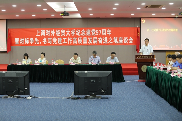 6月29日下午,学校纪念建党97周年暨“对标争先,书写学校党建工作高质量发展奋进之笔”座谈会在松江校区信息楼526会议室召开。校领导,各二级单位党组织书记、副书记,党委职能部门负责干部和获奖单位及个人参加座谈会。会议由校党委副书记、副校长祁明主持。
