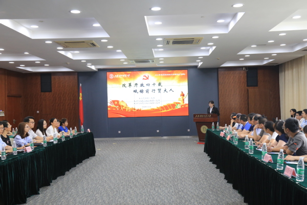 为了纪念改革开放四十周年,坚定党员理想信念,铸牢信仰,对标争先,充分发挥支部战斗堡垒作用和党员先锋模范作用,7月3日,统计与信息学院党总支在松江校区图文信息楼503室举行“改革开放四十载,砥砺前行贸大人”党员政治生日主题党日活动。本次活动由统计与信息学院学生第一支部、学生第二支部和机关党委第一支部的师生共同组织策划,机关党委第十一支部给予了大力支持。学院关工委分会老党员,广富林街道“七色桥”区域化党建联盟共建单位御上海居民区党支部、松江东方有线党总支和上海视觉艺术学院第一党总支的党员代表,校内结对支部机关党委第一支部和机关党委第十一支部成员、学院党总支委员、教师党员代表以及学生党员共同参加了活动。