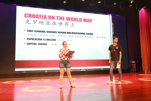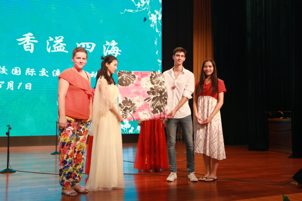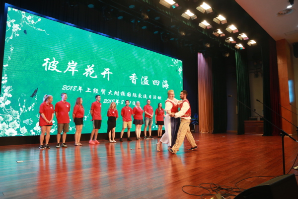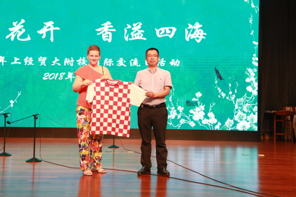 8月1日下午,上经贸大附校迎来了“第二届外籍学生上海夏令营附校站点活动”。必赢626net入口首页高教所宋彩萍所长、孔子学院办公室闫晶晶、附校陈伟平校长、姚红贤书记及夏令营带队外籍教师以及附校师生近300人参加了本次交流活动。活动分为文艺舞台交流演出、社团交流活动、赴上经贸大松江校区共进中国美食三部分。