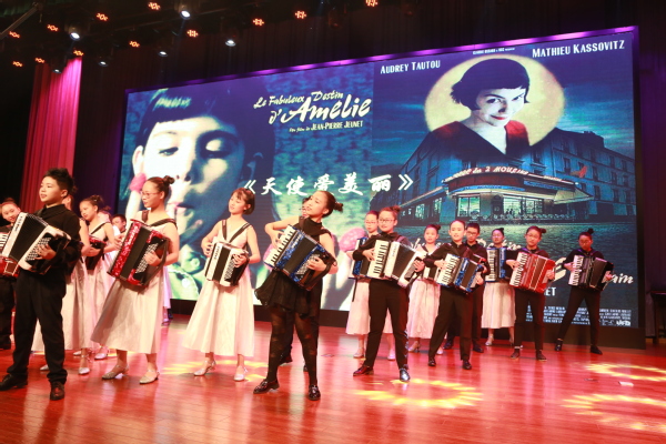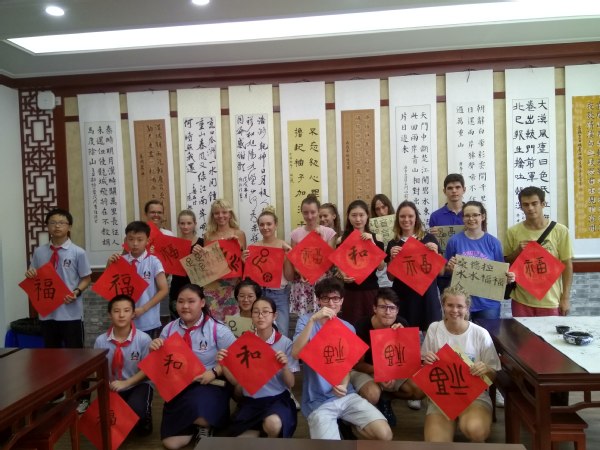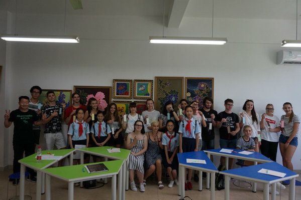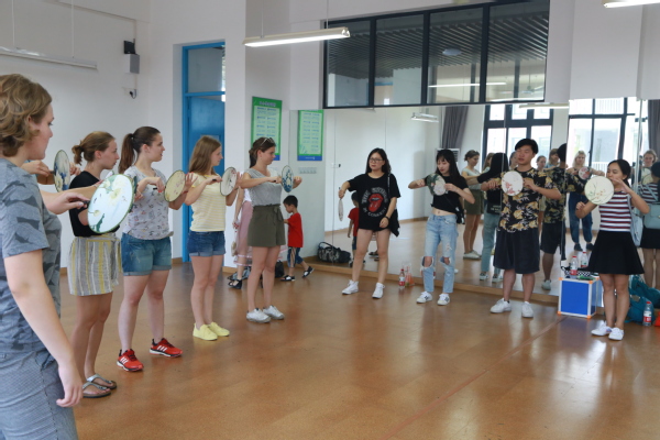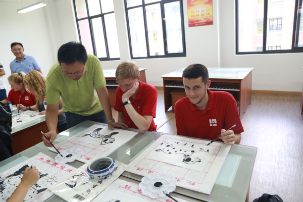 演出结束后,中外师生牵手走进了附校各专业教室,开展了水墨画、毛笔和硬笔书法、香包、舞蹈、花样跳绳、琵琶、古筝、语言交流等形式多样的文艺文化社团交流活动。