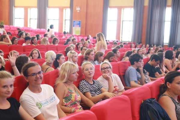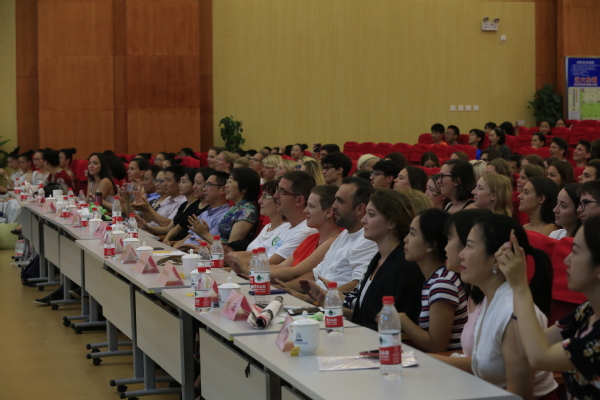 在附校的思源剧场,陈伟平致开幕词,他总结了去年暑期附校承接夏令营活动站点的交流活动情况,附校学生家长热情好客的美德深受夏令营外籍学生的喜欢。他表示,通过本次交流活动,两校师生将在活动过程中进一步增加了解、增进友谊、共同提升。