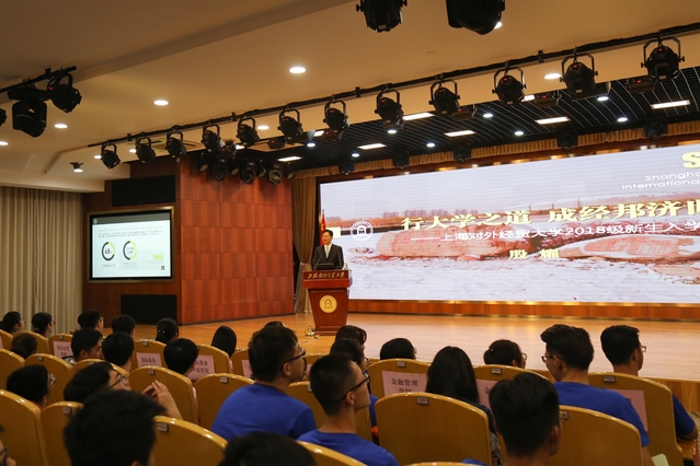 他重点向同学们介绍了学校的发展历史、精神文化和人才培养特色,讲述了裘劭恒、汪尧田等老教授教书育人服务国家的动人故事,介绍了孙渤、王文飞等校友的优秀事迹,勉励同学们要将校训精神“诚信、宽容、博学、务实”内化为心中的价值尺度和精神坚守,始终坚持以诚信立身、以宽容待人、以博学正业、以务实做事,努力践行社会主义核心价值观。
