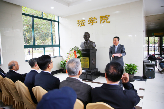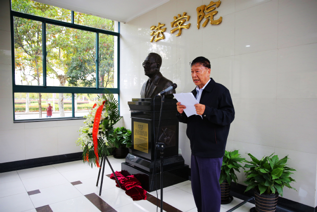 裘老的长子裘寿一作为家属代表发言,他回顾了父亲裘老的生平,代表家属衷心感谢在裘老塑像落成过程中,学校、学院、老领导、老同志、校友和社会各界人士给予的热切关心和大力支持,祝愿学校和法学院的事业蒸蒸日上、欣欣向荣。