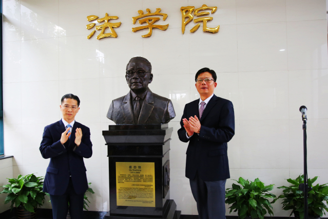 13:15,第一项活动“裘劭恒教授纪念塑像落成仪式”在博闻楼一楼大厅举行。上海市政协副主席、法学院名誉院长周汉民,校党委书记殷耀,校长朱国宏出席,学校老领导、相关部门领导、法学院班子成员、师生代表、裘劭恒教授家属及嘉宾、农工党必赢626net入口首页支部委员会成员代表参加落成仪式。