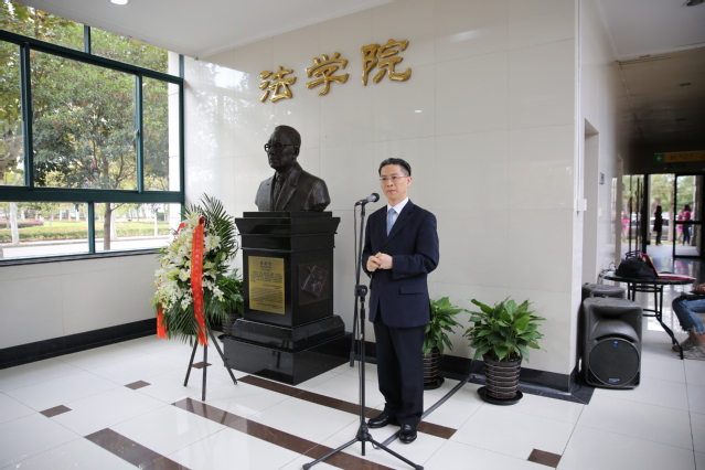 周汉民在讲话中指出,裘老的一生做了三件大事。他在东京审判的法庭上,代表一个深受日本蹂躏十数年的民族发出觉醒的声音、正义的声音、控诉的声音;他在国家审判“四人帮”的法庭上,代表受十年浩劫磨难的千百万同胞追求民族复兴、国家富强;他在香港行将回归祖国之际,成为香港基本法起草委员,为香港的长治久安,为祖国的繁荣富强做出自己独特的贡献。感谢学校的支持和莘莘学子的共同努力,在母校58周年诞辰之际,为我们敬爱的裘劭恒教授塑像,我们要继承裘老留下的思想遗产。