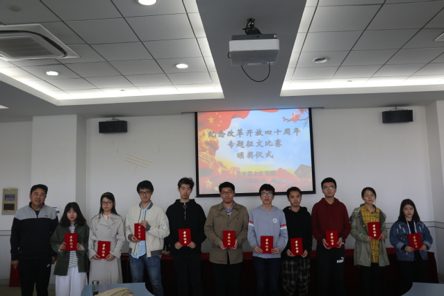 近日,马克思主义学院在信息楼530会议室举行“聆听长辈故事,见证时代变迁”——纪念改革开放四十周年主题征文颁奖典礼。马克思主义学院人文教研室教师和六十余名获奖学生出席典礼。颁奖典礼由人文教研室主任李欣老师主持,马克思主义学院副院长冯国芳宣布获奖名单并给获奖学生颁发了证书。
