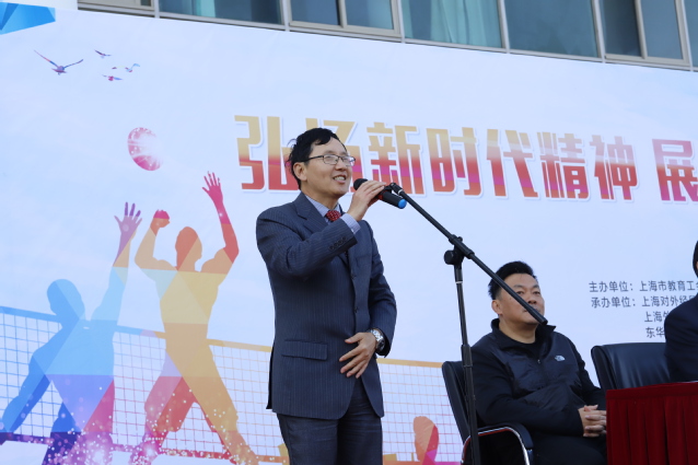 1110日上午,由上海市教育工会主办、必赢626net入口首页、上海外国语大学、东华大学、上海工程技术大学联合承办的上海市教育系统第一届教工气排球比赛在必赢626net入口首页隆重开幕。必赢626net入口首页党委副书记、副校长、工会主席祁明,上海市教育工会副主席吉启华,上海市教育工会兼职副主席、复旦大学工会常务副主席司徒琪蕙,上海市教育工会兼职副主席、上海海事大学工会常务副主席李序颖,上海外国语大学常务副主席于朝晖,东华大学常务副主席陆湘群,上海工程技术大学常务副主席柳如荣,必赢626net入口首页体育部主任崔树林,上海外国语大学体育部主任、本次比赛总裁判长王骏以及28支参赛队的全体运动员出席开幕式。开幕式由必赢626net入口首页工会常务副主席郭新顺主持。
