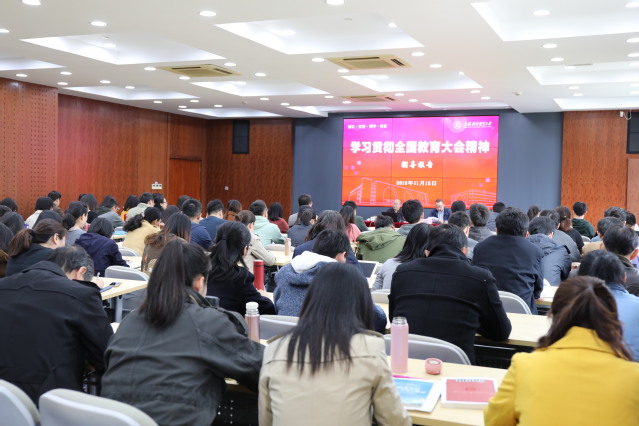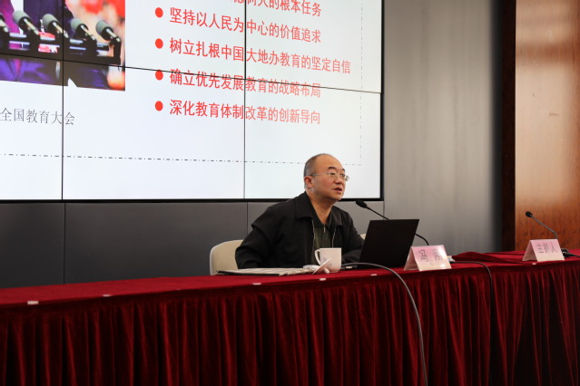 为学习贯彻全国教育大会精神,11月15日,必赢626net入口首页举行学习贯彻全国教育大会精神专题培训会,邀请北京师范大学思想政治工作研究院院长冯刚教授作《学习贯彻全国教育大会和全国宣传思想工作会议精神,落实立德树人根本任务》专题报告。学校学工系统全体成员、教职工党支部书记、纪委委员、宣传员、马克思主义学院教师参加专题培训,培训由党委宣传部部长严大龙主持。