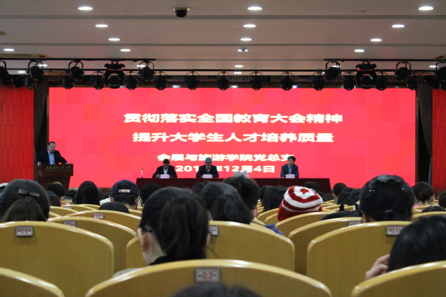 12月4日中午,会展与旅游学院党总支召开学院全体学生大会,学习贯彻全国教育大会精神学风建设动员大会。会上,学院党总支书记武增勇向全体学生讲解了全国教育大会精神,围绕习近平总书记提出的“培养社会主义建设者和接班人”的目标、和“在坚定理想信念、厚植爱国主义情怀、加强品德修养、增长知识见识、培养奋斗精神、增强综合素质上下功夫”的具体要求,结合当前大学生在学业中存在的问题和困惑,进行了解读。同时武增勇结合当前学校开展的学风建设活动,通过列举发生在学生身边的例子和数据,告诫全体同学,务必要加强政治理论学习,不断提高自己的思想认识和道德修养,树立正确的世界观、价值观、人生观,把个人发展和祖国需要相结合,努力学习,使自己成为德智体美劳全面发展的合格的社会主义建设者和接班人。