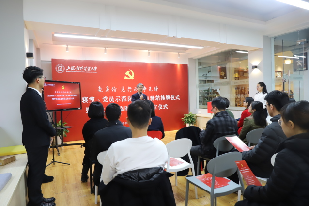 仪式上,祁明和姬好好共同为学生社区临时党支部揭牌。黄静、陈颖辉为党员寝室、党员示范岗、党员驿站授牌。