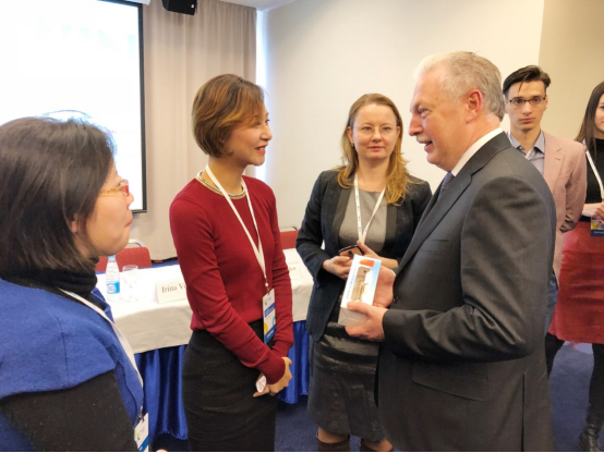 第三部分是友好城市“文化之夜”,由圣彼得堡国立经济大学中国与亚太国家研究中心主任Tatiana B. Urzhumtseva主持,她亲切的用俄语和中文向所有到访的青年学者问好致意,并带领国际青年学者开启了世界文化之旅。各个代表团上台介绍自己的城市历史、文化和特色。必赢626net入口首页陈之瑜老师介绍了“今日上海”和在上海举办的“中国国际进口博览会”,并详细地向友成青年介绍了必赢626net入口首页的概况。