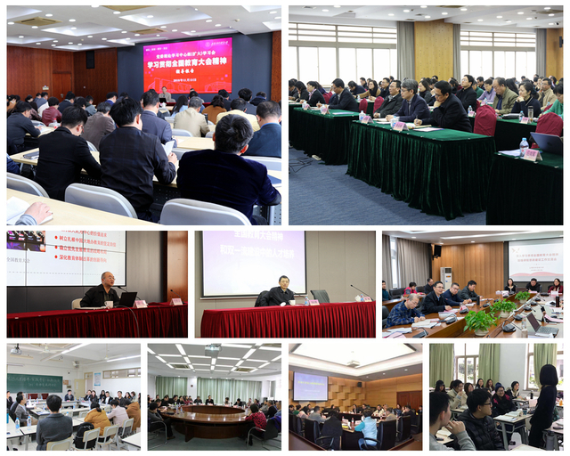 全国教育大会召开后,学校深入学习贯彻全国教育大会精神,组建宣讲团开展集体备课,领导带头宣讲全国教育大会精神。学校邀请市教委主任陆靖、复旦大学高等教育研究所熊庆年教授和北京师范大学冯刚教授作专题报告和培训。试点学院“三全育人”工作,打造“梦享家”社区青年中心,开展多种形式的师生结对共建活动。持续推进课程思政改革,加强课程思政建设工作交流会,形成了系列课程思政改革案例。各学院以校外导师聘任会等形式,积极推进人才培养和“三全育人”工作。