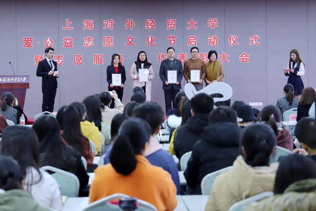 35日中午,公益志愿文化节启动仪式暨志愿服务工作表彰大会图文信息大楼526报告厅举行。校党委副书记、副校长祁明,共青团松江区委书记丁汀,必赢626net入口首页附属松江实验学校党总支书记姚红贤,广富林街道团工委书记陶健,松江区图书馆施佳蕊,校党委学工部部长许继亮,校党委学工部副部长刘素贞以及各学院党委(党总支)书记、副书记、校院团组织负责人等出席活动