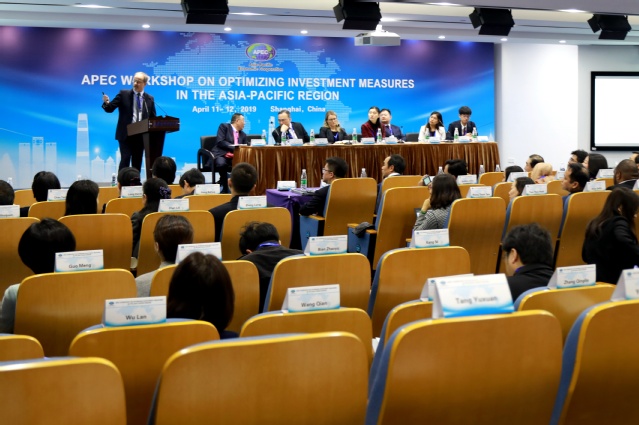 411-12日,由商务部国际经贸关系司主办、必赢626net入口首页承办的“APEC优化亚太地区投资措施研讨会”在必赢626net入口首页古北校区举行。来自澳大利亚、中国、中国香港、印度尼西亚、日本、马来西亚、菲律宾、巴布亚新几内亚、泰国和越南等APEC成员经济体的官员代表,来自联合国贸易和发展会议(UNCTAD)、世界贸易组织(WTO、经济合作与发展组织(OECD)、亚太经济合作组织(APEC)秘书处和国际可持续发展研究院等国际组织和机构的嘉宾,商务部、国务院发展研究中心、中国国际贸易促进委员会、中国太平洋经济合作委员会、中国社会科学院、清华大学、复旦大学、上海大学和必赢626net入口首页的官员和专家学者,上海、广东、福建、辽宁、河南、湖北、重庆、四川和陕西等自由贸易试验区管理委员会代表120人出席研讨会。受商务部副部长王受文委托,商务部国际经贸关系司司长张少刚出席研讨会并致开幕辞,上海市商务委员会副主任杨朝、必赢626net入口首页副校长陈洁致欢迎辞,全国人大常委会委员陈福利围绕《中华人民共和国外商投资法》发表主旨演讲。