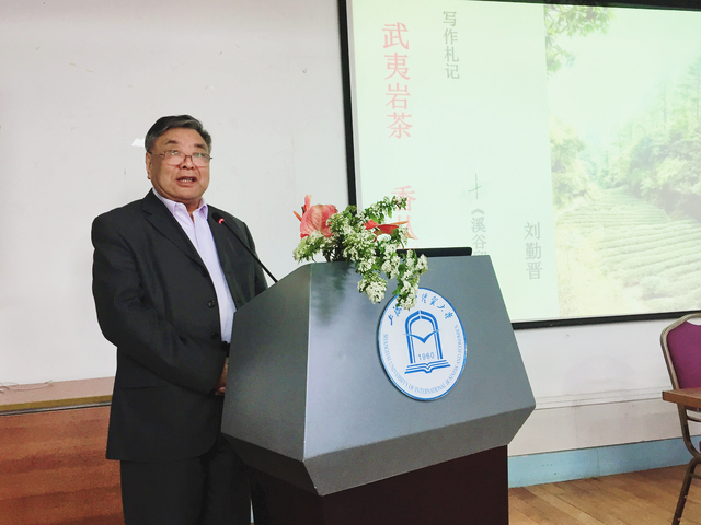 为倡导“科学饮茶、健康饮茶”理念,使师生了解、分享并传承中华茶文化,4月15日下午,上海市茶叶学会和必赢626net入口首页继续教育学院在古北校区博观楼205室举办首届中国武夷岩茶推广活动。本活动邀请了著名茶学专家西南大学刘勤晋教授讲授《溪谷留香 武夷岩茶香从何来?》的主题讲座,他从生态学、细胞学、媒化学以及工程技术等多学科角度分析了武夷岩茶成香机理,在讲座进行的同时进行了“坑涧肉桂”、“竹窠水仙”、“牛栏坑肉桂”、“悠久留长”和“不可思议”五款茶的品鉴会。农业部专家组专家、中国农业出版社高级编审穆祥桐,上海市茶叶学会顾问、吴觉农纪念馆顾问刘启贵,上海市茶叶学会副理事长余从田,上海市茶叶学会秘书长高胜利以及必赢626net入口首页师生50余人参加本次活动。