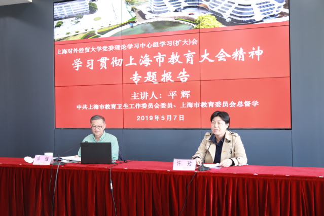 为深入学习贯彻上海市教育大会精神,5月7日下午,学校在信息楼503会议室召开党委理论中心组学习(扩大)会。会议邀请市教卫工作党委委员、市教委总督学平辉作题为“迈向2035:中国教育现代化——教育现代化监测评价研究”的辅导报告。学校党委理论学习中心组成员、全体中层干部参加了学习会,会议由校党委副书记、纪委书记许玫主持。