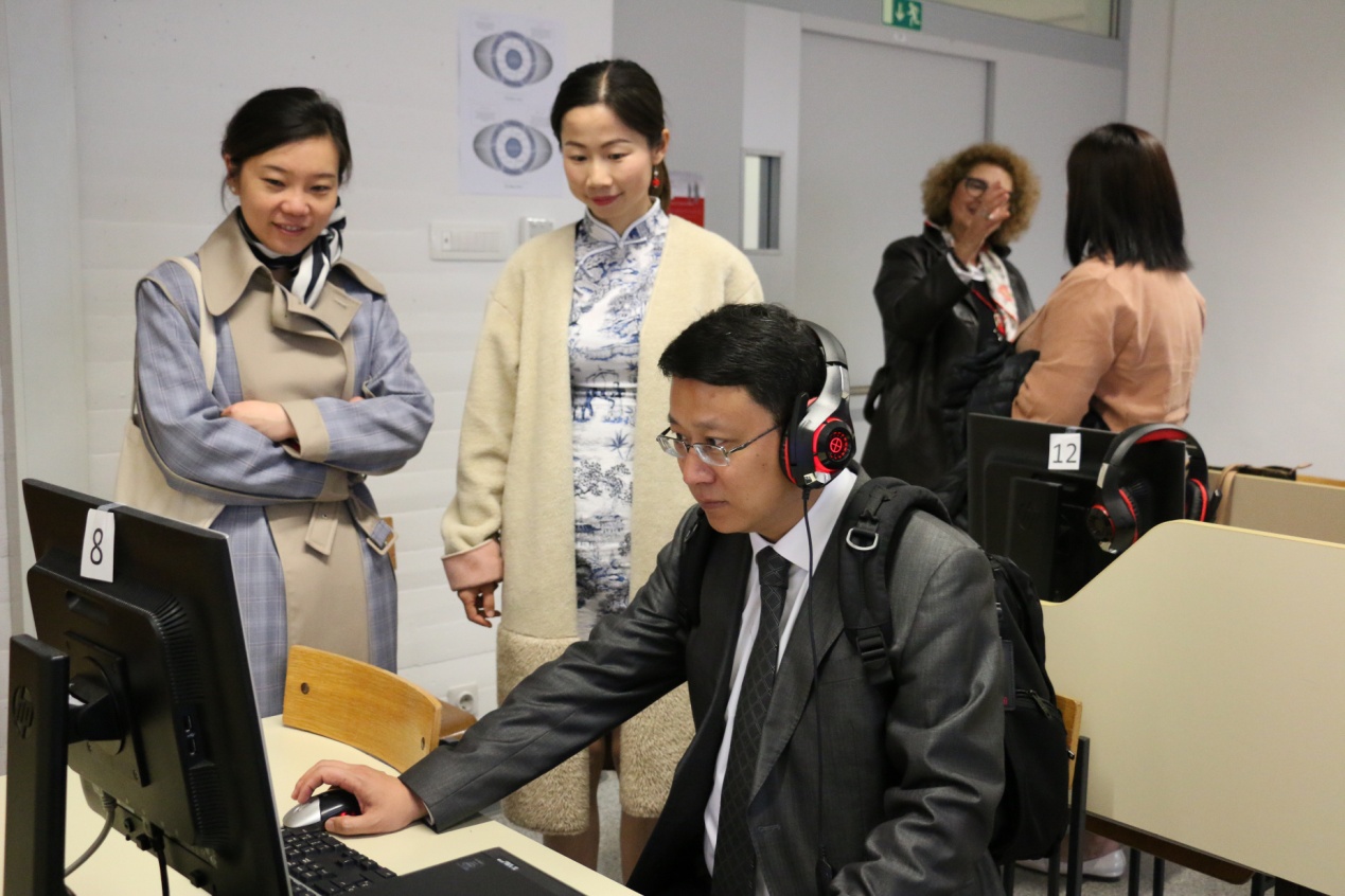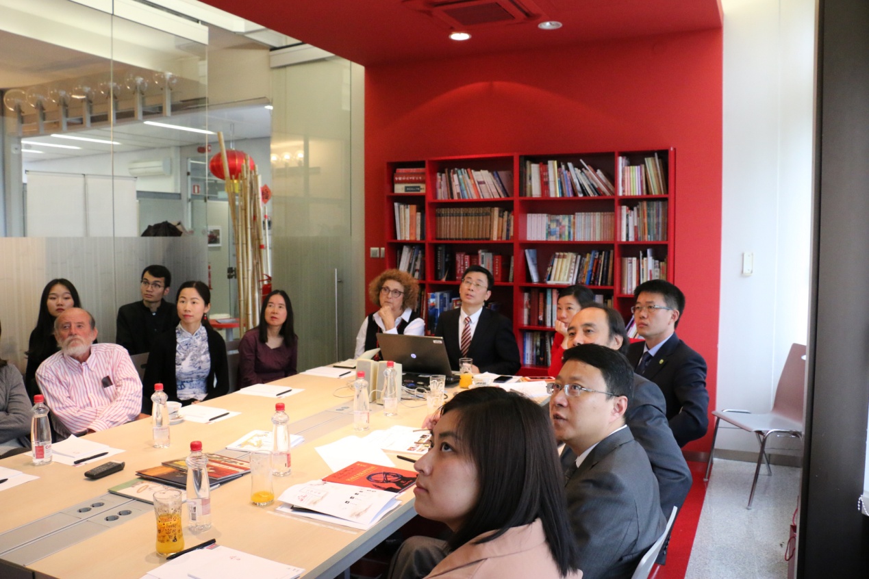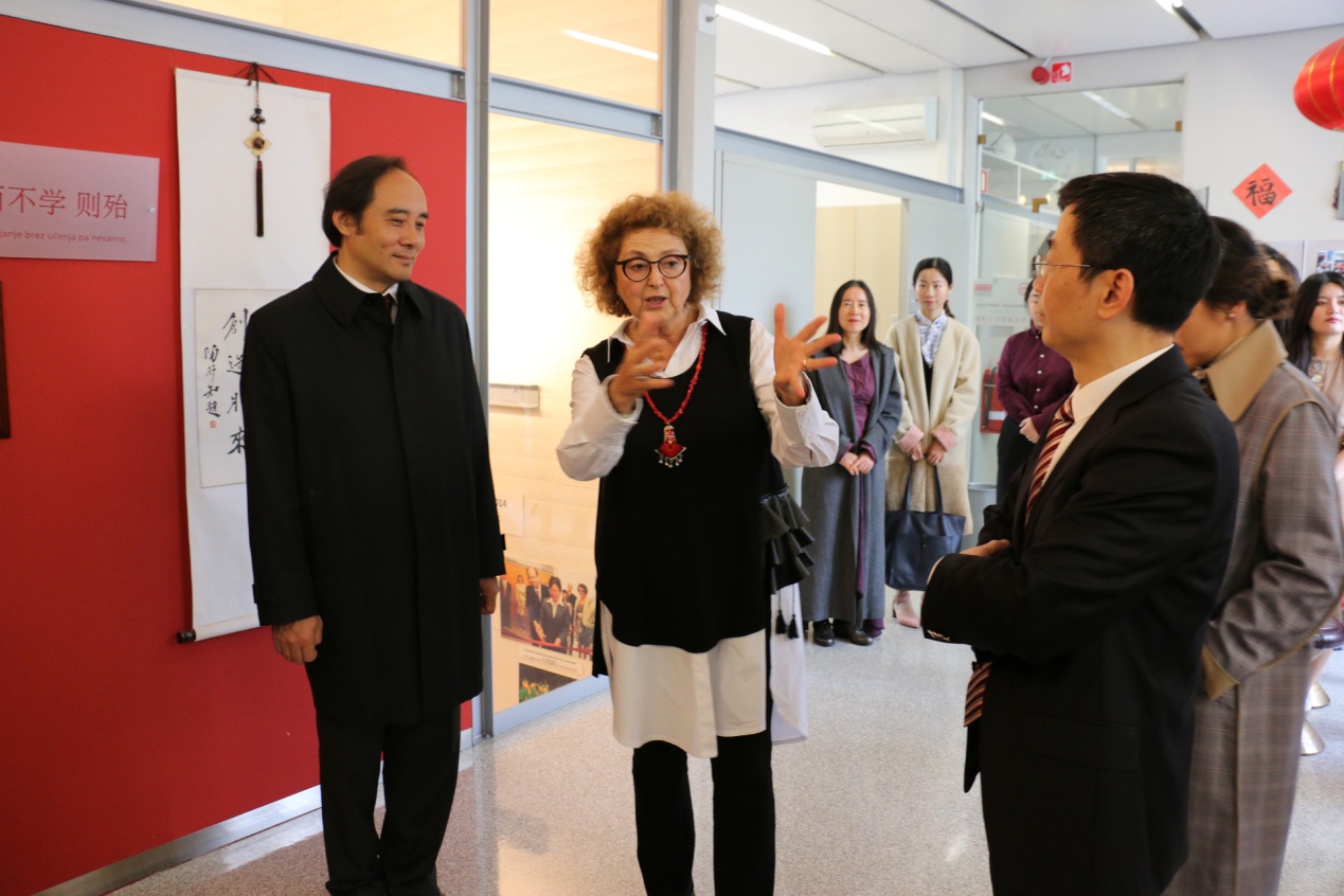 5月12日中午和下午,督导团一行来到孔子学院视察,受到了孔院全体工作人员的热烈欢迎。他们观看了孔子学院宣传视屏,听取了斯方院长达尼叶拉•沃里奇(DanijelaVoljc)女士和中方院长谢都全博士的详细工作汇报,查看了包括孔院制度、发展规划、年度工作计划与总结、教学材料、孔院大事年表、媒体报道、财务报表、孔院出版物等各种汇报资料,参观了孔院办公场地、会议室、茶室、多功能教室、HSK网考中心等,与所有中方教师举行座谈,了解他们的工作和生活状况。赵国成副主任一行对学院工作,尤其是内涵建设和特色发展、孔院的未来发展方向和定位给予充分肯定,并对孔子学院提出的一些重要议题,如将汉语变成斯洛文尼亚中小学的第二外语、与国内院校合作建立“中国—中东欧”企业并购研究中心、培养“汉语+”高级专业人才等表示赞许和支持。