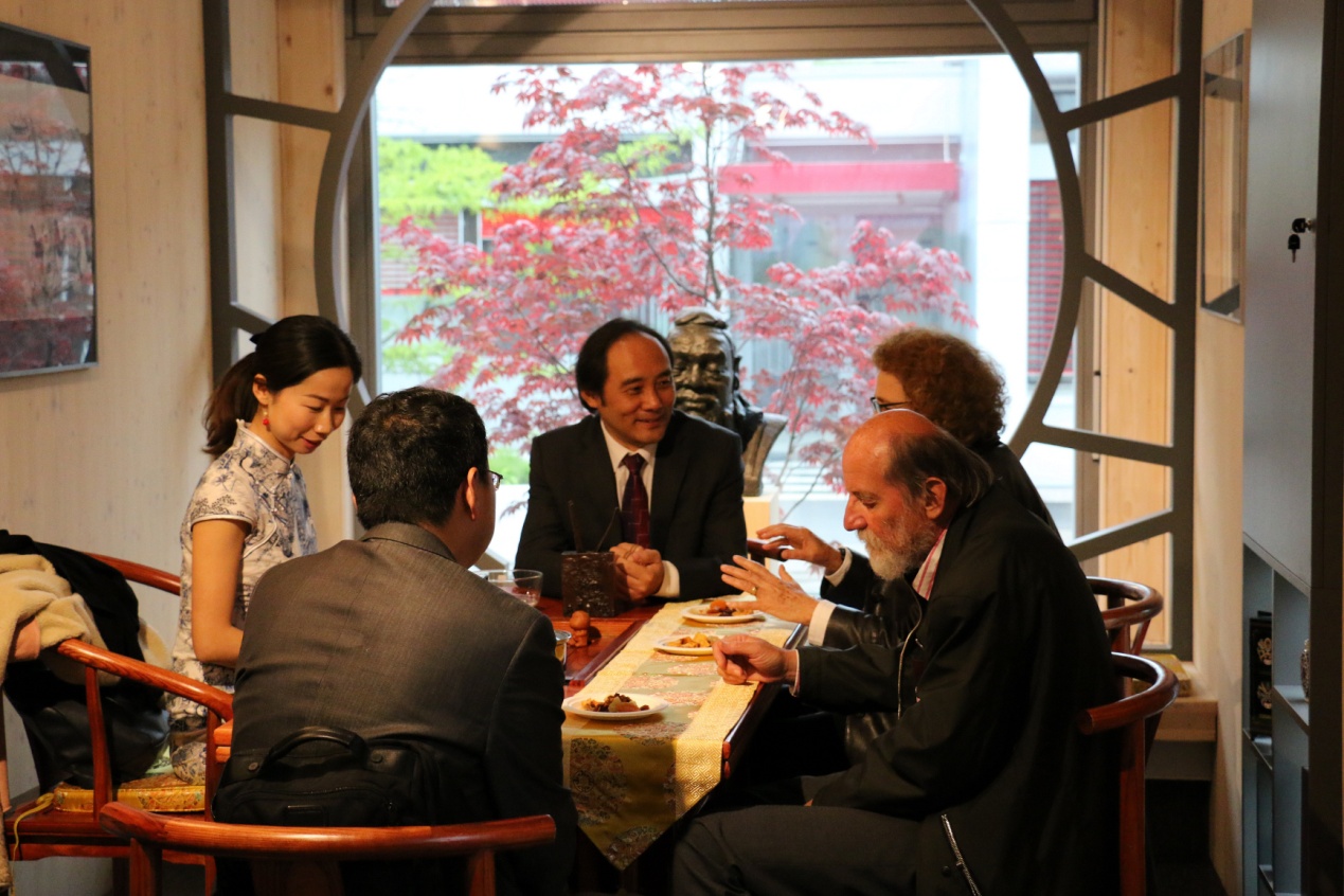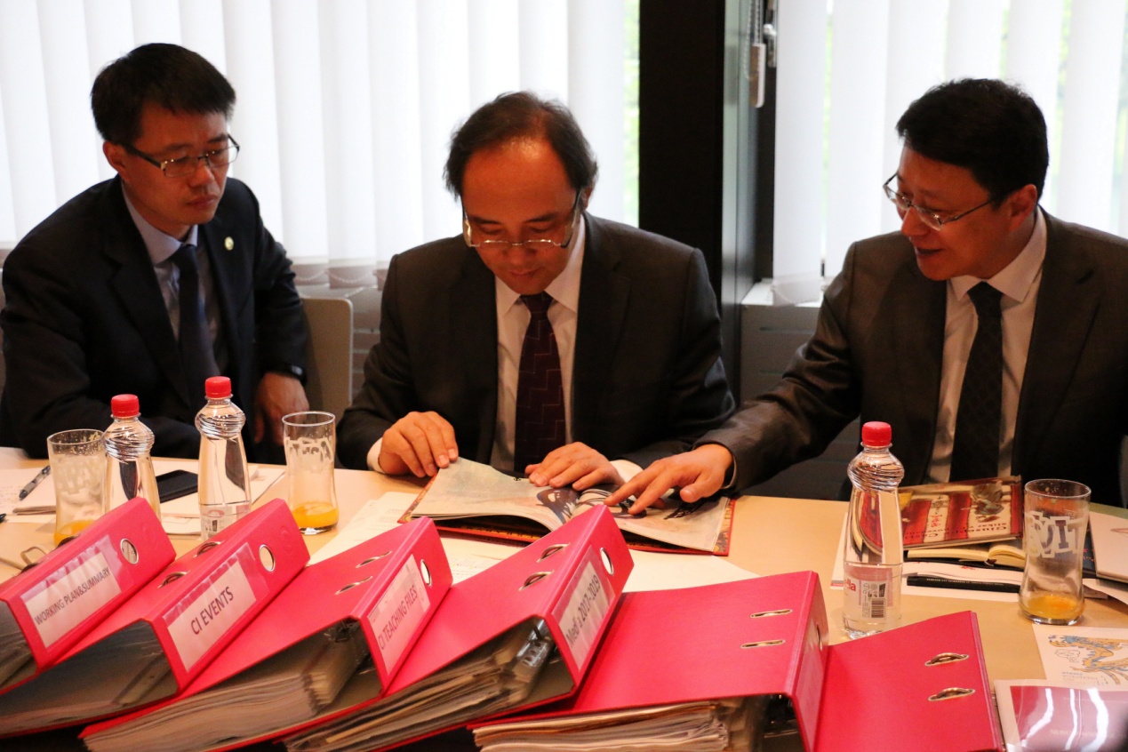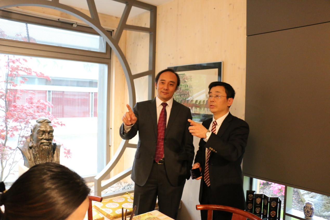 5月12日中午和下午,督导团一行来到孔子学院视察,受到了孔院全体工作人员的热烈欢迎。他们观看了孔子学院宣传视屏,听取了斯方院长达尼叶拉•沃里奇(DanijelaVoljc)女士和中方院长谢都全博士的详细工作汇报,查看了包括孔院制度、发展规划、年度工作计划与总结、教学材料、孔院大事年表、媒体报道、财务报表、孔院出版物等各种汇报资料,参观了孔院办公场地、会议室、茶室、多功能教室、HSK网考中心等,与所有中方教师举行座谈,了解他们的工作和生活状况。赵国成副主任一行对学院工作,尤其是内涵建设和特色发展、孔院的未来发展方向和定位给予充分肯定,并对孔子学院提出的一些重要议题,如将汉语变成斯洛文尼亚中小学的第二外语、与国内院校合作建立“中国—中东欧”企业并购研究中心、培养“汉语+”高级专业人才等表示赞许和支持。