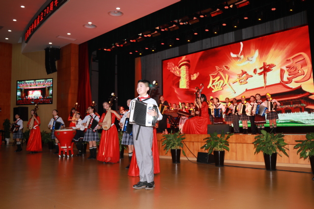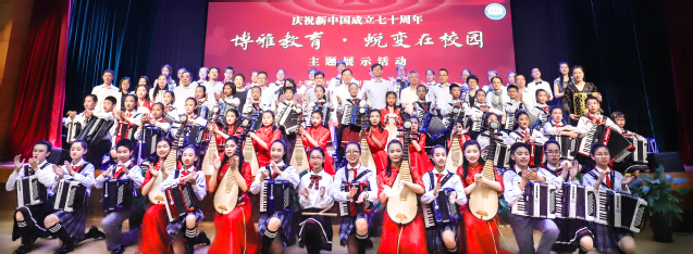 主题展示活动分为“求知·基础学习篇”“试变·探索实践篇”“初绽·融合发展篇”三个篇章,分别展现了附校精心打造的实践五大课程、对学生五大能力的提升和对学生五大品行的培养。附校学生表演了打击乐《鼓动节拍》、合唱《长城谣》、旗舞《舞动校园》、花样跳神《舞动青春》、炫彩画《炫彩名画秀》、中外文化之旅《附校航班号》、地理探究《男孩与苹果树》等节目,活动在流行手风琴曲结合新民乐的创新作品——《盛世中国》中划上圆满句号。