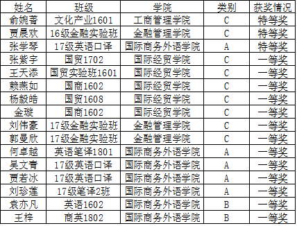 近日,全国大学生英语竞赛上海地区总决赛在上海交通大学落下帷幕。必赢626net入口首页来自国际商务外语学院的张学琴、金融管理学院的贾晨欢及工商管理学院的俞婉菁荣获全国特等奖,来自国际经贸学院的张紫宇等13位同学荣获全国一等奖,相比往年在获奖数量和质量上都有所提升。