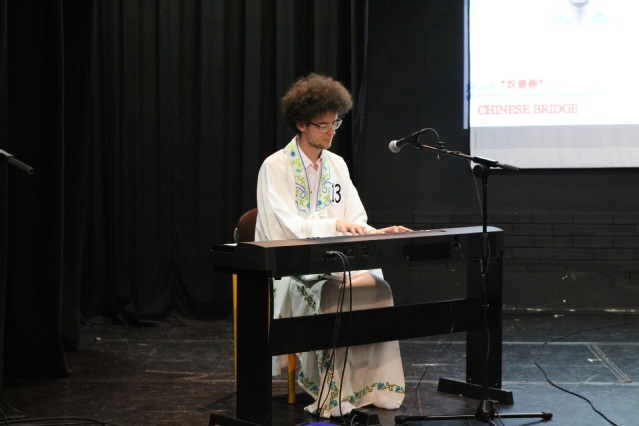 比赛由演讲、才艺展示和知识问答三个环节组成。演讲环节,大学组和中学组的参赛选手们分别带来了以“天下一家”和“学会中国话,朋友遍天下”为主题的演讲,讲述了自己中国情结、与汉语结缘的故事和对人类命运共同体的理解。才艺展示环节,选手们各显神通,带来了包括中国舞、太极、手绘中国地图、古诗朗诵和中国歌曲弹唱等精彩节目。在知识展示环节,选手们对答如流,充分展示了对中国国情、语言文化的了解。