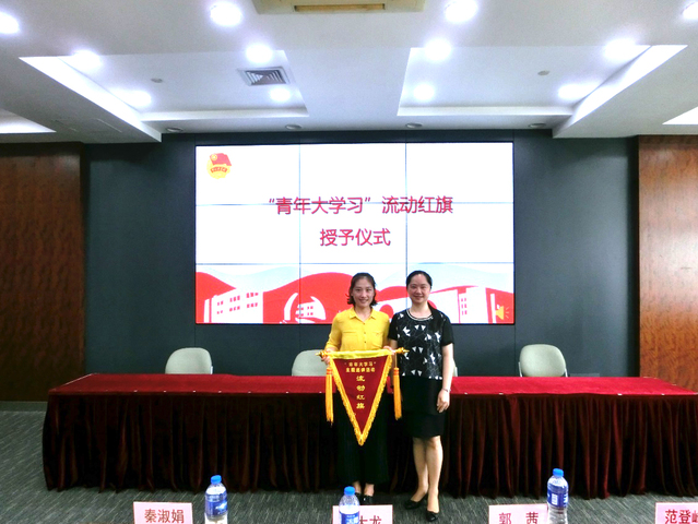 会上,郭茜为承办巡讲活动的国际经贸学院团委授予了“青年大学习”流动红旗。