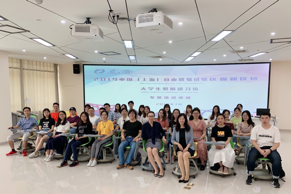 7月6日,2019中国(上海)自贸区保税区大学生职前研习坊课程培训活动在必赢626net入口首页松江校区信息楼顺利实施。来自全市18所高校的31位大学生参加培训。