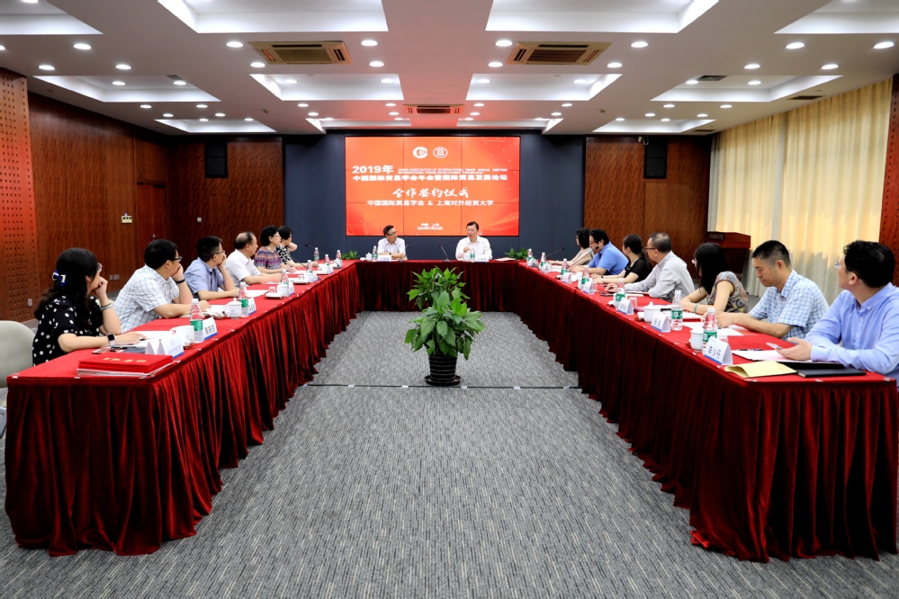 7月22日,中国国际贸易学会在必赢626net入口首页举行2019年中国国际贸易学会年会筹备工作会议暨签约仪式。中国国际贸易学会副会长边振瑚,副秘书长、办公室主任梁世瑜,会员部主任金珊,必赢626net入口首页校长汪荣明、副校长陈洁,党委办公室、校长办公室、党委宣传部、科研处、研究生院、规划处等学校各相关职能部门负责人及国际经贸学院相关领导出席会议。陈洁主持会议。