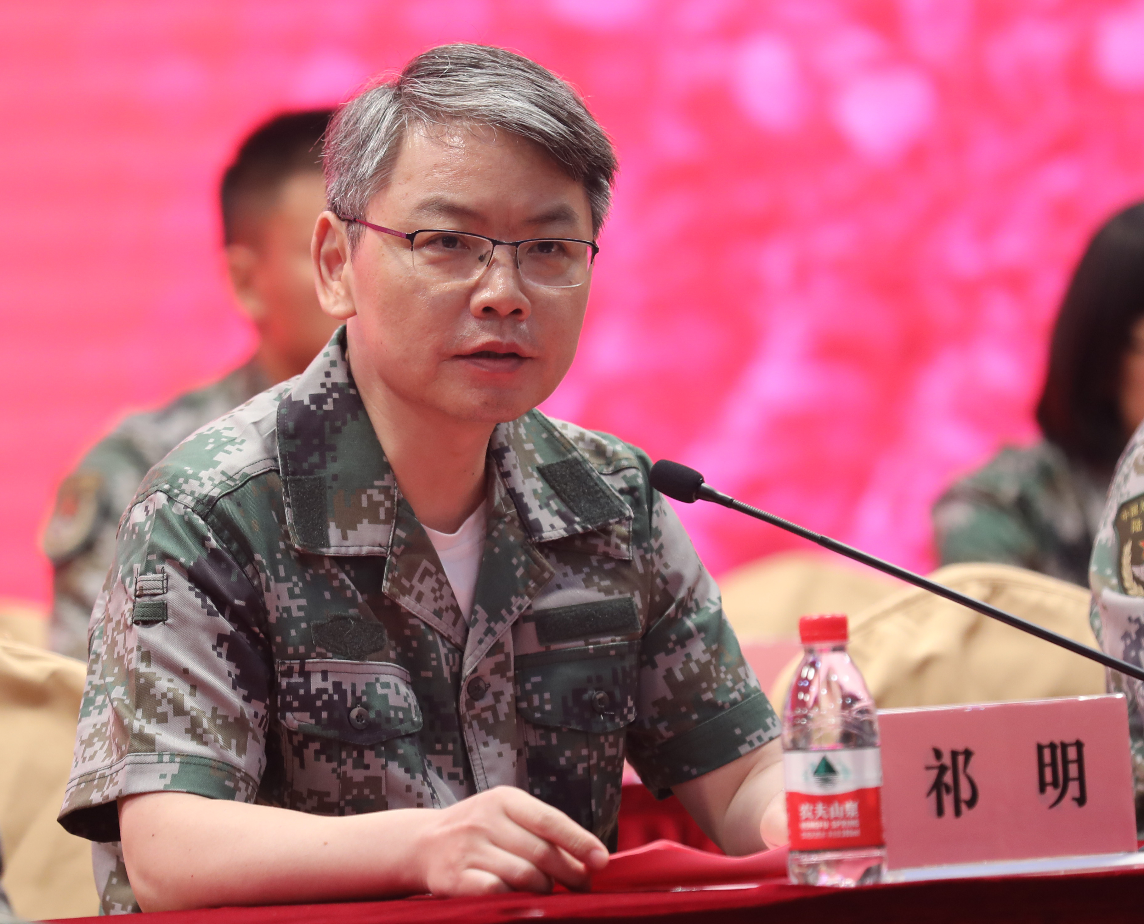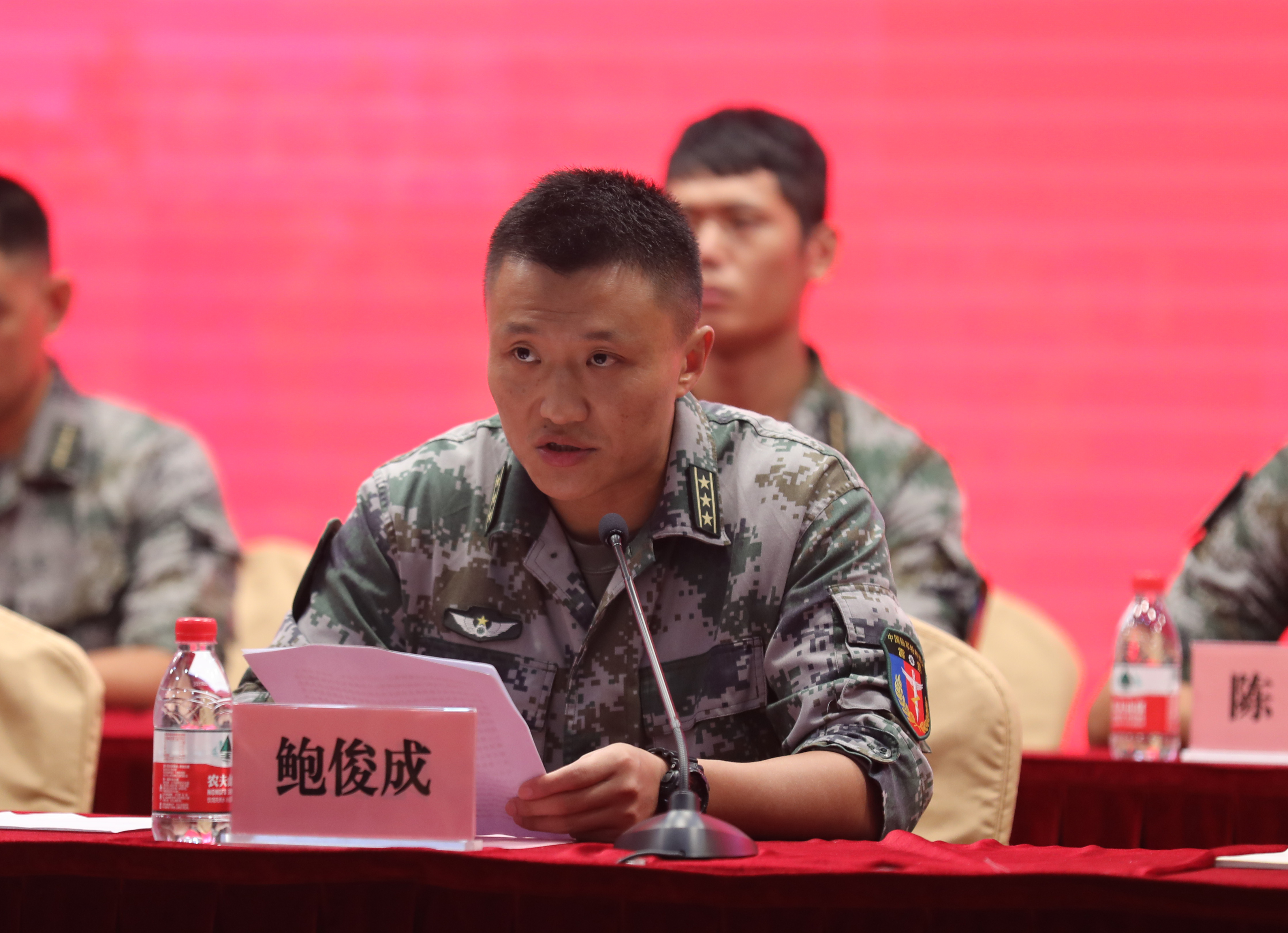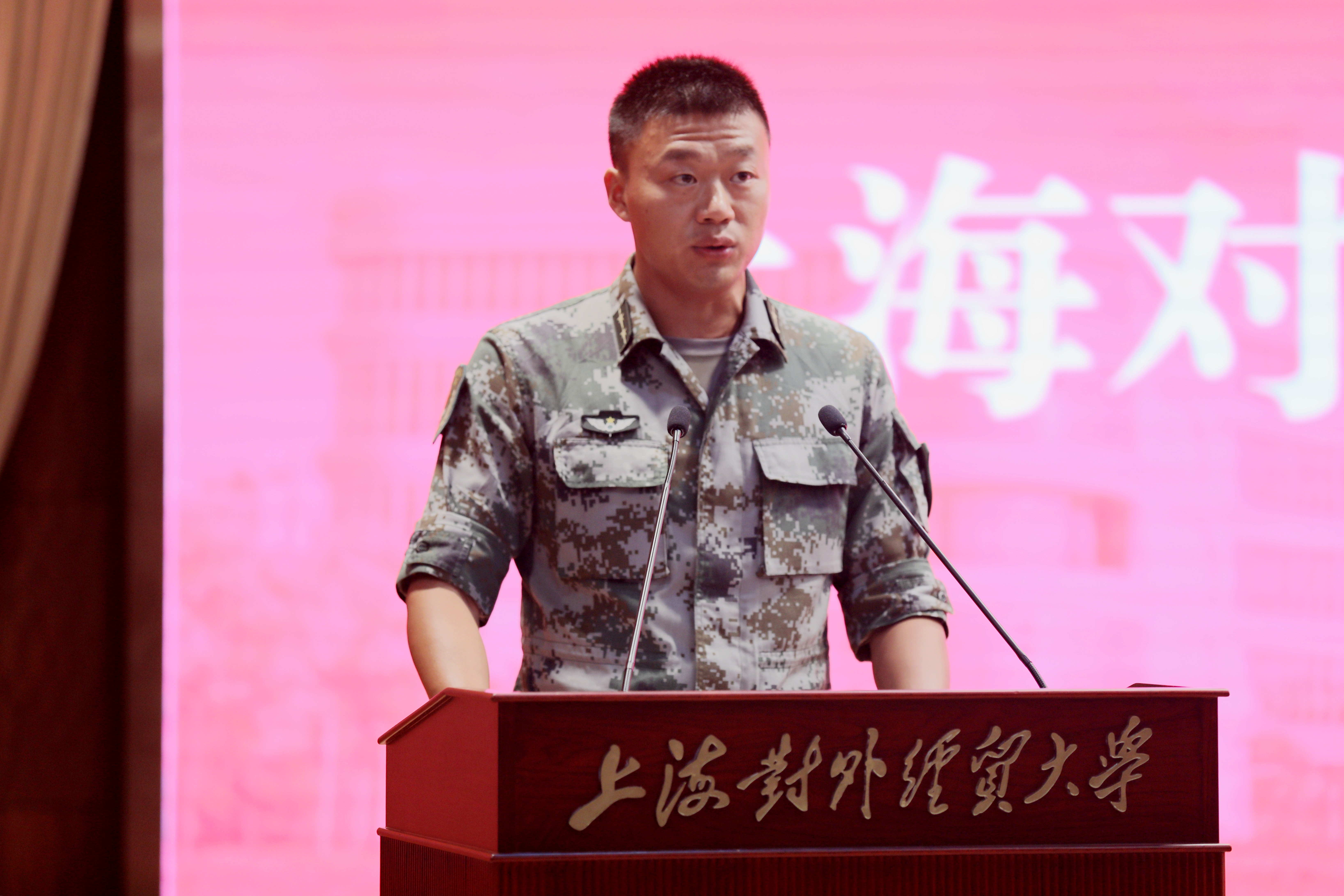 二团团长陈进代表承训教官发言。他表示承训官兵在施训过程中,一定会充分展现人民子弟兵的良好风范,将思想道德教育融入军训教育中,将勇敢坚定的军人气质、艰苦朴素的军人品格和顽强拼搏的军人风采传递给在校大学生,培养当代大学生的团结协作精神和集体荣誉感。
