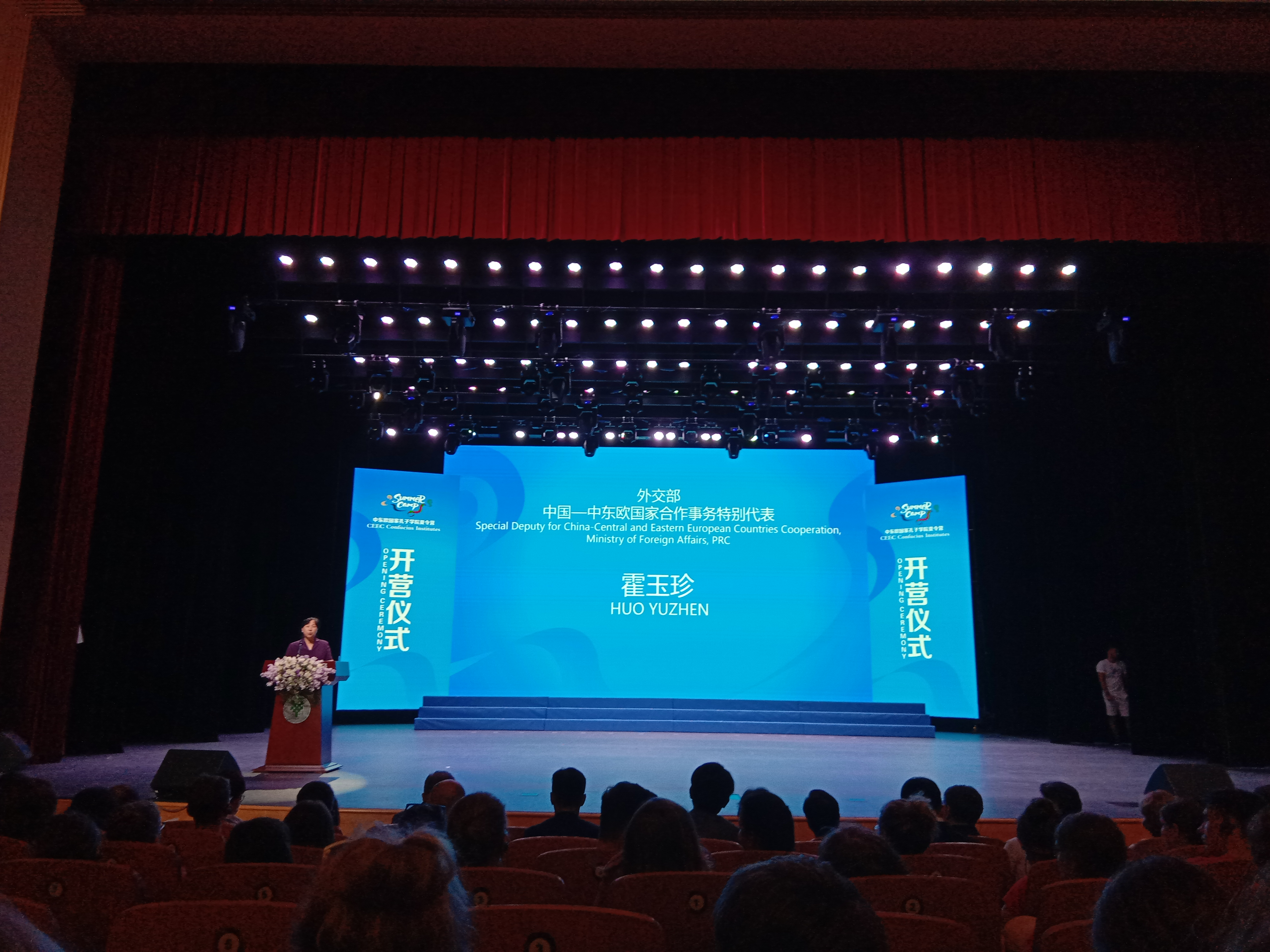 7月22日,为配合“2019年中国—中东欧国家教育/青年交流年”,促进中国与中东欧国家人文交流,献礼中华人民共和国成立70周年,孔子学院总部主办的第四届中东欧国家孔子学院夏令营在北京语言大学举办开营仪式。孔子学院总部副总干事赵国成、欧洲处处长杨金成、外交部中国—中东欧国家合作事务特别代表霍玉珍、北京语言大学校长刘利、副校长张宝钧、匈牙利驻华大使白思谛、克罗地亚共和国驻华大使达里欧·米海林、拉脱维亚驻华使馆副大使依古娜、斯洛伐克驻华使馆副大使脱寞、北马其顿共和国驻华使馆代办佐理查·塔什科夫斯卡、斯洛文尼亚驻华使馆副大使马博洋,以及来自中东欧16个国家、31所孔子学院的千名师生等齐聚北京语言大学出席本次活动。必赢626net入口首页中东欧三所孔院四家孔子课堂200多名学员参加开营仪式。