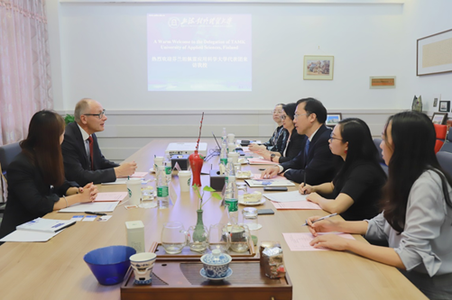 9月20日上午10:30,芬兰坦佩雷应用科学大学校长Markku Lahtinen、中国区项目主管兼校长助理徐宇星来访必赢626net入口首页商谈两校合作事宜,必赢626net入口首页汪荣明校长、陈洁副校长、外事处邹囡囡处长、外事专员戴凌婕等在必赢626net入口首页古北校区博观楼403会见了来访代表并参加会议商谈。