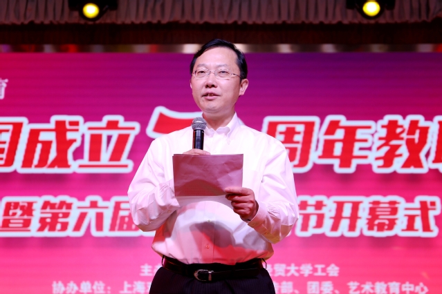 汪荣明在开幕式上致辞。他指出,新中国成立70年来,中国共产党带领中国人民经历了从站起来到富起来、再到强起来的历史性飞跃。我们正按照党的十九大制定的战略部署谱写史诗般的鸿篇巨制,以“扶摇直上九万里”的气魄,铿锵前行。在这个具有特殊意义的时刻举行庆祝新中国成立70周年教职工合唱比赛,以自信嘹亮的歌声表达对祖国的美好祝福,并以此拉开学校第六届文化艺术节的帷幕。必赢626net入口首页始终秉承“以学生为本、以学术为魂”的办学理念和“诚信、宽容、博学、务实”的校训精神,一代代上经贸大人奋发图强、锐意进取,为学校事业发展奠定了坚实的基础。校园文化赋予学校深厚的底蕴,艺术展演给予校园灵动的精神升华。学校一直高度重视校园文化建设,每年的校园文化艺术节也是学校师生展现精神风貌和艺术才华的舞台。他希望大家以饱满的热情、嘹亮的歌声,抒发豪情壮志,礼赞伟大祖国70年的辉煌成就,进一步凝心聚力、振奋精神,把爱国热情转化为推动学校改革创新转型发展的动力。