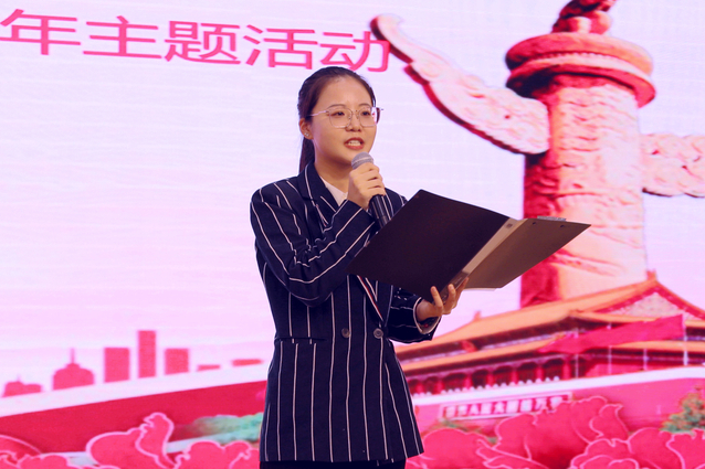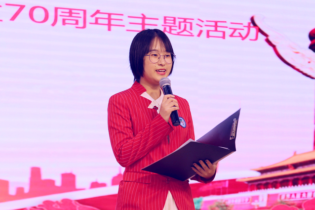 校党委书记殷耀讲话。他指出,庆祝新中国成立70周年主题活动,既是引导广大党员铭记历史、追寻初心的重要形式,也是对青年大学生们进行的一次爱党爱国教育;既是向历史致敬,更是向未来奋进。他强调,要始终坚定理想信念,在坚守初心中成就伟业;要不断强化使命担当,在不懈奋斗中实现梦想。他希望学校各级党组织和全体党员、干部都能以“不忘初心、牢记使命”主题教育为重要契机,深入学习贯彻习近平新时代中国特色社会主义思想,切实增强“四个意识”、不断坚定“四个自信”、坚决做到“两个维护”,以坚定的理想信念坚守初心、滋养初心、践行初心,切实担负起为党育人、为国育才的神圣使命,为国家培养更多优秀的高层次、应用型、国际经贸人才,更好地服务上海“五个中心”“四大品牌”建设和三项新的重大任务,以学校事业发展的新进步、新成绩为祖国献礼。