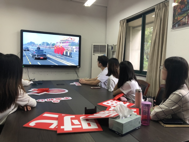 随着阅兵式和群众游行的开始,师生们的掌声、欢呼声此起彼伏。大家为受阅方阵的精彩表现而喝彩,为中国共产党带领全国各族人民实现从站起来到富起来,再到强起来的伟大征程感到无比自豪。
