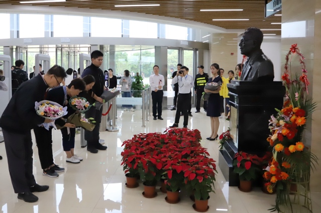 塑像迁移仪式上,裘劭恒教授和汪尧田教授家属代表、必赢626net入口首页师生代表分别向两位前辈塑像献花,全体嘉宾向塑像三鞠躬,以表对裘劭恒教授和汪尧田教授的崇高敬意和深切缅怀。